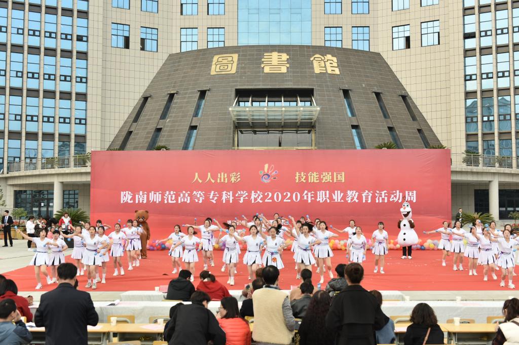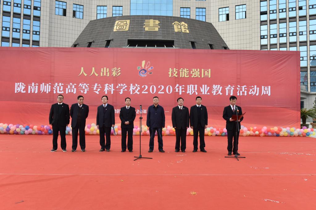 为深刻领会党的十九届五中全会精神,落实《国家职业教育改革实施方案》和《教育部 甘肃省人民政府关于整省推进职业教育发展打造“技能甘肃”的意见》的要求,营造尊教尊技、劳动光荣、人人出彩的良好氛围,根据《教育部等十部门关于做好2020年职业教育活动周相关工作的通知》和省教育厅有关工作要求,11月10日,学校在图书馆前广场举行“2020年陇南师专职业教育活动周” 启动仪式。党委书记余学军,党委副书记王莹成,副校长张建辉、任永峰、王胜青、王录全、张勇,纪委书记、监察专员镡旭东出席仪式,各相关处室、学院负责人和学生共1000余人参加活动。启动仪式由张勇主持。