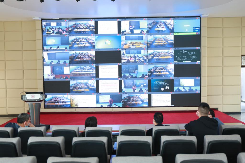 随后,她来到科技楼109的监控大屏在线巡课,全面了解教学情况。(文/教务处 图/黑 蕾)