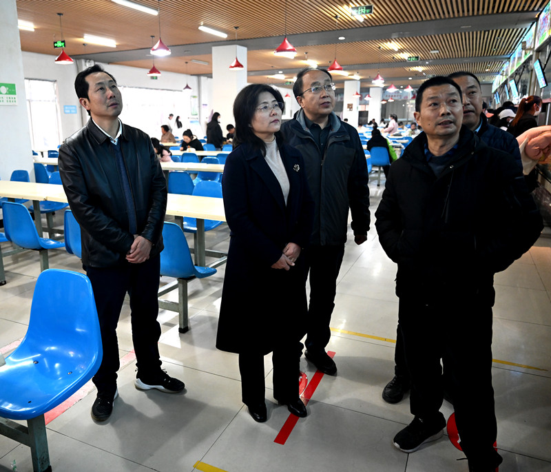 3月2日上午,校长李艳红带领学校办公室、学生处、后勤处等部门负责人深入学生餐厅,详细了解食堂安全工作情况,并就餐饮保障工作提出具体要求。