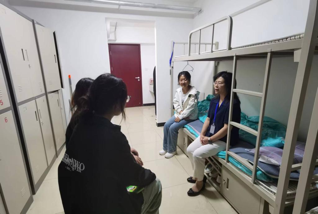 高博会期间,李艳红一行还考察了青岛京东方光电科技有限公司并看望在青岛实习的部分学生。在人事部门负责人的介绍下,李艳红对公司的发展历史、产品研发和用人需求进行了全面了解,参观了学生实习工作场所,看望了机电与工程学院智能制造专业学生夏瑶,杨静玉,机电一体化专业彭世霞的生活环境,并与公司负责人就实习学生的管理建议、校企深度合作进行了座谈交流。返程之际在蓝海大酒店看望了历史文化与旅游学院21旅游管理专业学生邵子龙,并就学生反映的诉求与企业负责人进行了交流。