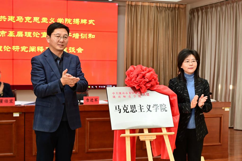 市委常委、宣传部部长唐进军与校长李艳红共同为部校共建马克思主义学院揭牌