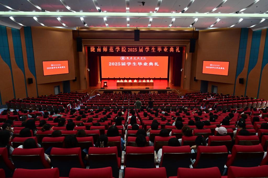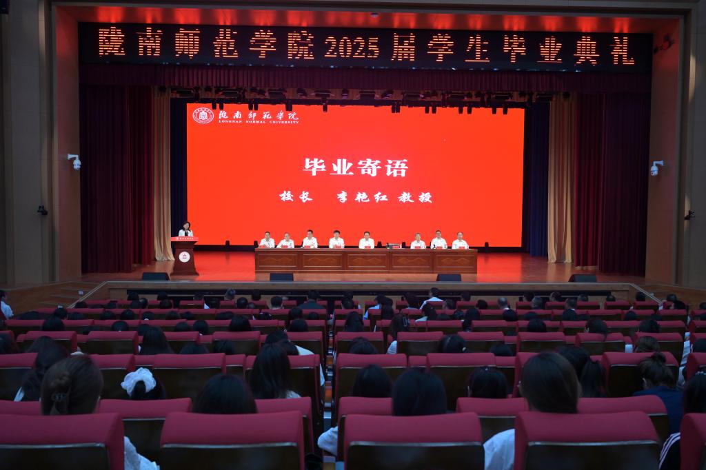 李艳红在毕业致辞中回顾了同学们三年来的成长点滴、学校升格本科以来的发展成就,并向全体毕业生提出了三点希望:一是坚定理想信念,把握青春航向。将个人理想抱负与爱国之情、报国之志紧密结合,在服务国家发展和人民福祉中贡献青春力量;二是持续加强学习,踩准时代鼓点。必须通过学习不断提升本领,坚持终身学习,避免陷入少知而迷、不知而忙、无知而乱的困境;三是准确定位价值,修炼品德作风。秉承“坚苦奋达”的陇师精神,践行“养正育德 博学新民”的校训,将道德认知、道德养成和道德实践有机结合。