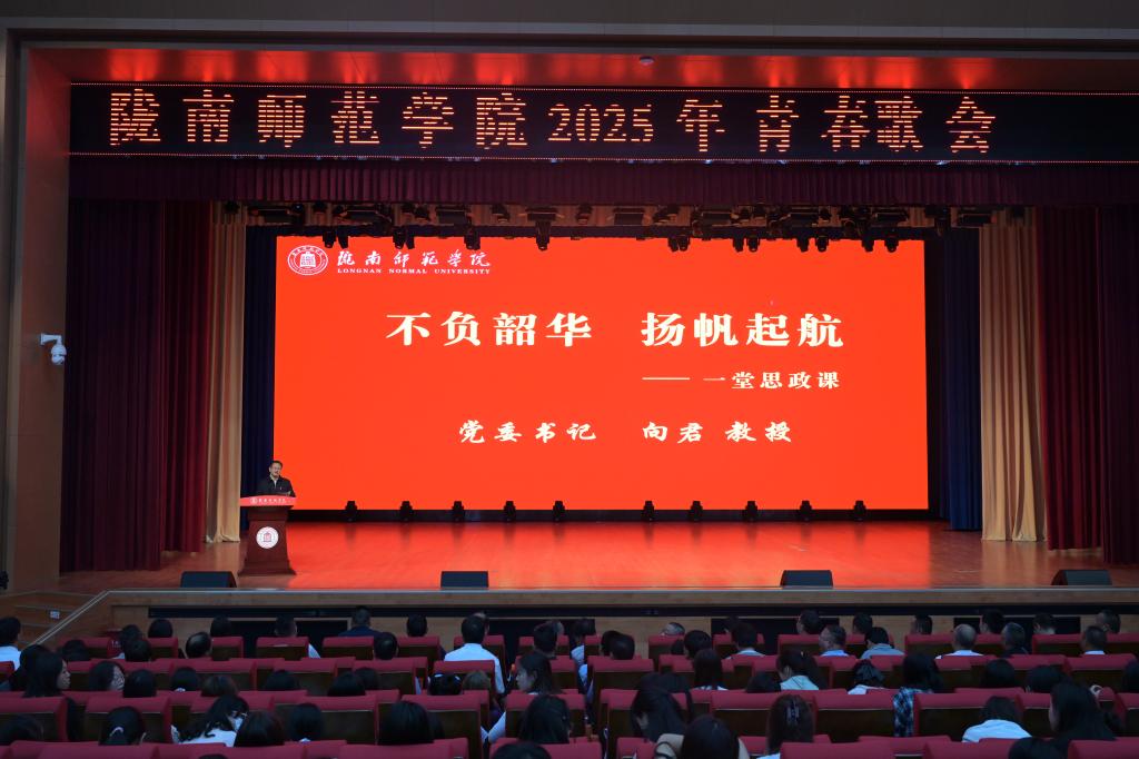 教师代表马克思主义学院党总支书记袁滢勉励即将步入社会的同学们,勇敢追求梦想,创造属于自己的传奇!祝愿所有毕业生前程似锦,期待未来能以杰出校友的身份重返母校,让陇师为每一位学子骄傲!