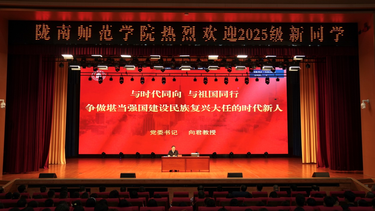 9月6日晚,学校党委书记向君以“与时代同向 与祖国同行 争做堪当强国建设民族复兴大任的时代新人”为题,为2025级新生讲授“开学第一课”。党委副书记焦鹏宁主持活动。