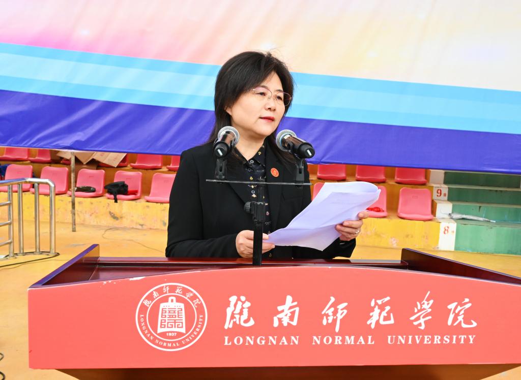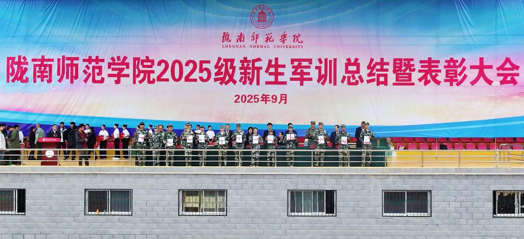 9月20日,学校召开2025级学生军训总结暨表彰大会。校长李艳红,党委副书记焦鹏宁,纪委书记、监察专员郭省军,副校长李开明,党委委员石明、李杰,武警陇南支队执勤一大队政治教导员郭超出席大会。承担军训任务的武警陇南支队全体教官,各学院党总支书记、院长,相关处室负责人,2025级新生辅导员、班主任,以及2025级全体新生参加大会。大会由副校长镡旭东主持。