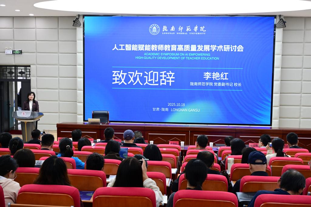 开幕式上,校长李艳红致开幕辞。她指出,在全面推进教育数字化的时代背景下,人工智能正在系统性地重塑教育生态结构与运行范式。推动人工智能与教师教育深度融合,是面向未来的战略性工程,是造就高素质专业化创新型教师队伍的根本大计。她强调,本次研讨会致力于搭建汇聚多方智慧的高层次交流平台,共同探索智能技术与教师教育深度融合的创新路径与发展模式,是深刻把握时代脉搏、践行教育现代化战略的重要举措,将为构建“人工智能+教师教育”新生态、推动高素质专业化创新型教师队伍和推进教育强国建设注入强劲动能。