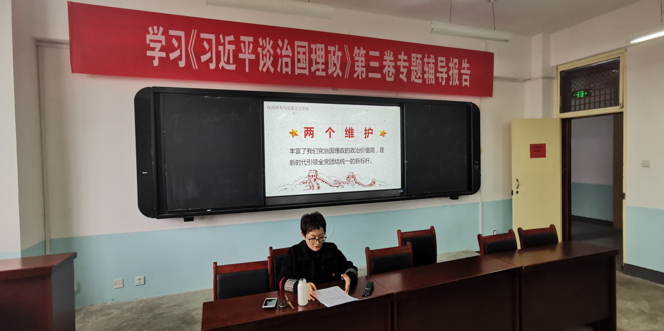 袁滢从两个维护、两个大局、两大奇迹、两大革命、两件大事等五个方面对《习近平谈治国理政》第三卷进行了深入浅出的讲解,系统阐述了《习近平谈治国理政》第三卷的精神实质和核心要义,并要求在学懂、弄通、做实上下功夫,加强课堂思政,用习近平新时代中国特色社会主义思想铸魂育人。
