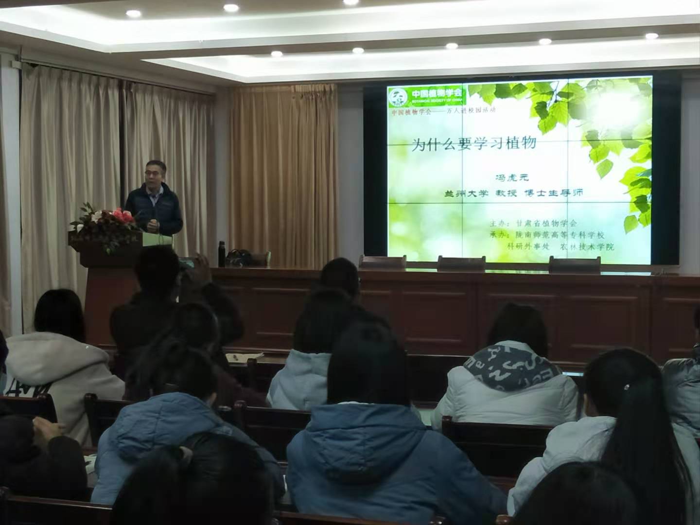 农林技术学院院长王让军副教授、科研外事处副处长王瀚教授、相关专业教师及学生200余人聆听了此次报告会。该场讲座也是中国植物学会“万人进校园”活动的内容之一。(科研外事处 农林技术学院)