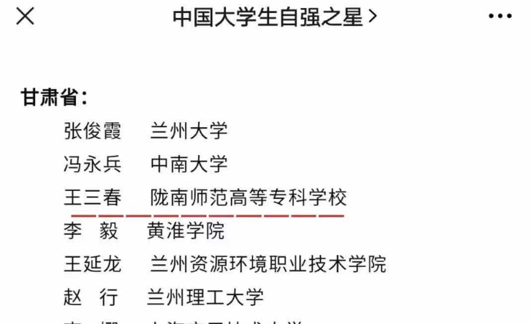据悉,李洁茹同学也获得了2019年甘肃省大学生自强之星标兵荣誉称号,2018级小学教育专业学生任亚红、2019级思政教育专业学生山佳丽、2018级历史教育专业学生孙国强等3名同学获得甘肃省大学生自强之星荣誉称号。全国寻访“中国大学生自强之星”活动自2007年启动,每年评选一次,已连续举办了13届。王三春、李洁茹同学,勤学律己,自强不息,成为发挥榜样引领作用的自强典型。(团委 兰青)